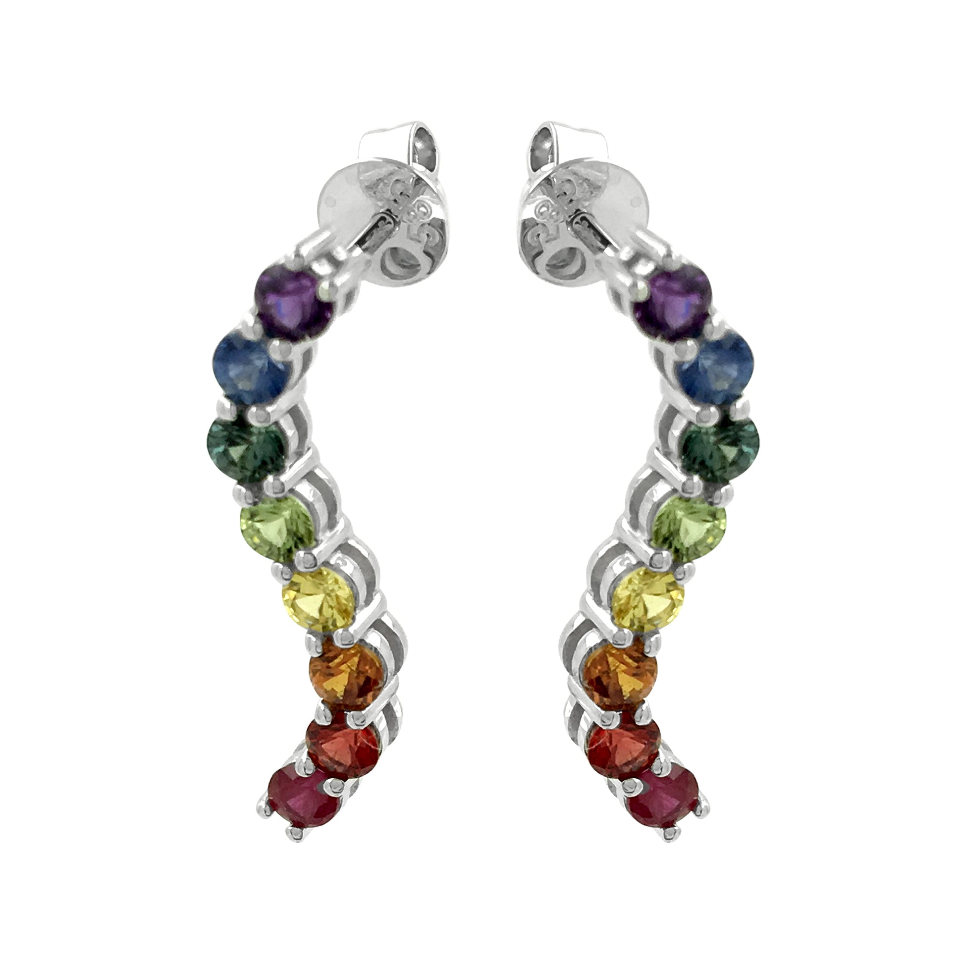 Unlike standard rainbow jewelry, these use natural sapphires, offering a sophisticated depth of color and superior hardness that makes them suitable for daily wear. The white gold setting provides a crisp, neutral backdrop that allows the saturated hues of the gemstones to truly "pop."
